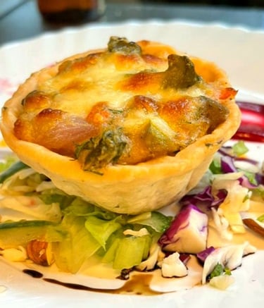 Golden Catch: Prawns and tropical mango salsa, with shrimp, garlic & herb butter.