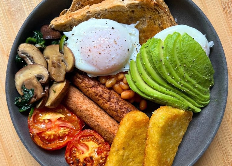 Beet carpaccio, Vegan smashed avocado, Wild mushrooms with harissa hummus, Vegan sausages, Burrata with spiced pear, Ceviche-inspired vegan bowls, Kale loaf with guacamole, Vegan soups, Large savoury scones, Potato hash with cheese, Vegan shakshuka.